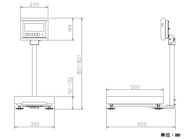 LCD(液晶表示) 質量表示サイズ:18.8(W)×36(H) 設定表示サイズ:4.7(W)×9(H) |